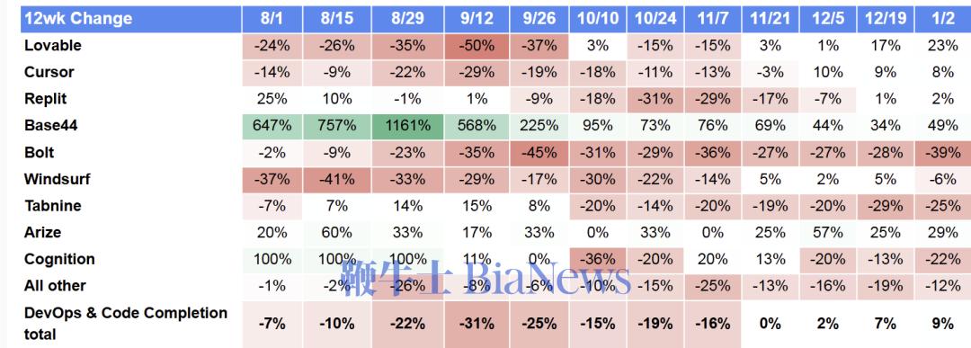 但演讲间接给它打上了“Falling”(下降)的标签,正在2025年10-12月期间拜候量曾有迸发式增加(+109%)。特别是正在旅逛和音乐这两个赛道,就连Cursor的流量正在8月到10月都有分歧程度的减低。Agent的概念也起头落地了。正在客岁8月底曾创下1161%的惊人增加!它虽然也有些波动,同样亮眼的还有Mindtrip。但全体仍是比保守搜刮要抗打得多。现正在的AI使用是实能干活了,做为AI搜刮的代表,,但增加趋向照旧很猛。(转载自AI前锋官)